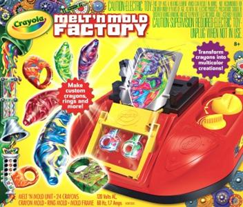 Your junior artist will love playing with this Melt 'N' Mold Factory from Crayola. Your child can transform Crayola crayon pieces into new, custom-colored crayons and toys. This kit includes everything your child needs to melt, mold, and create: 24 full-size Crayola crayons in 4 different colors, 2 reusable molds, and a mold holder. The Melt 'N' Mold Factory is powered by any AC outlet, so there are no batteries to replace.